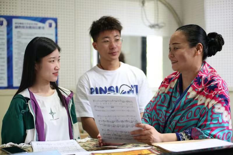 苏娜老师担任本科声乐主修课程和研究生声乐专业课程,每年每周的工作量均在20节以上,超额完成教学任务。在教学过程中,她努力探索教学内容,创新教学方式,推进“课程思政”。她针对学生开展二十四字社会主义核心价值观歌曲演唱训练,并把传统的专题样态授课方式与翻转课堂的教学方式有机结合,运用线上线下相结合的方式对学生进行指导。实践证明,这能够快速提高学生的舞台实践能力和逻辑思维能力。经过训练,她的每位学生都能完成一场音乐会的曲目(九至十二首)声乐作品,三至四篇小论文。2021年,她的声乐主项课程立项省级研究生“课程思政”示范课程。